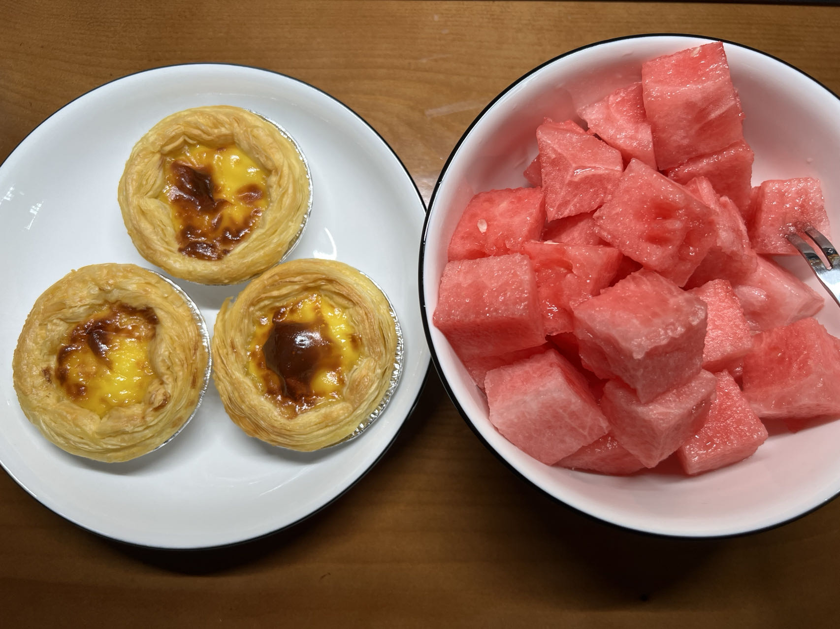 5 月初,疫情开始有了好转,买菜也开始变得容易了些,甚至能买到西瓜、蛋挞液等改善型物资了。
