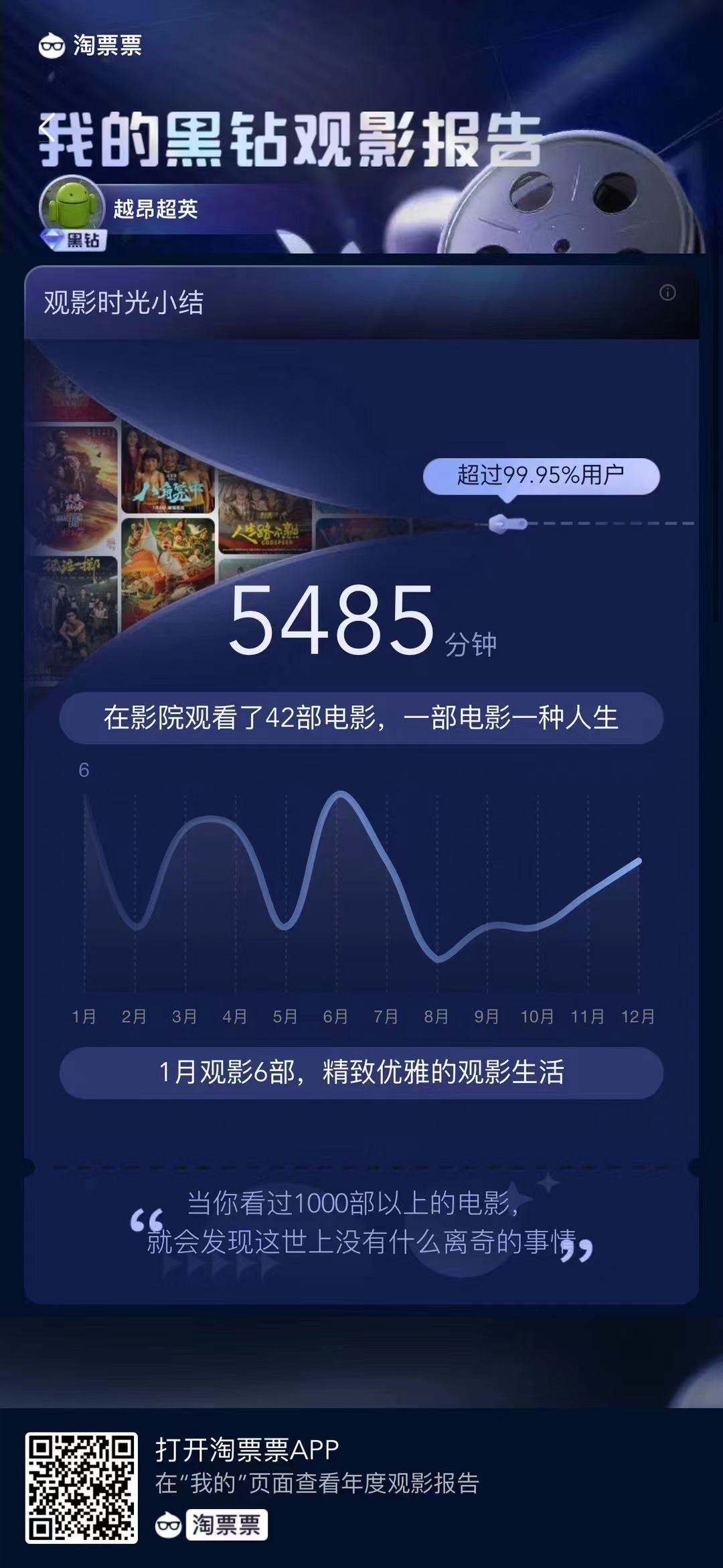 这一年去电影院看了 42 场电影,其中国产电影 16 部(二刷《流浪地球 2》)、国外电影 24 部(二刷《奥本海默》),超过疫情三年之和。同时解锁了在新加坡看电影的成就。